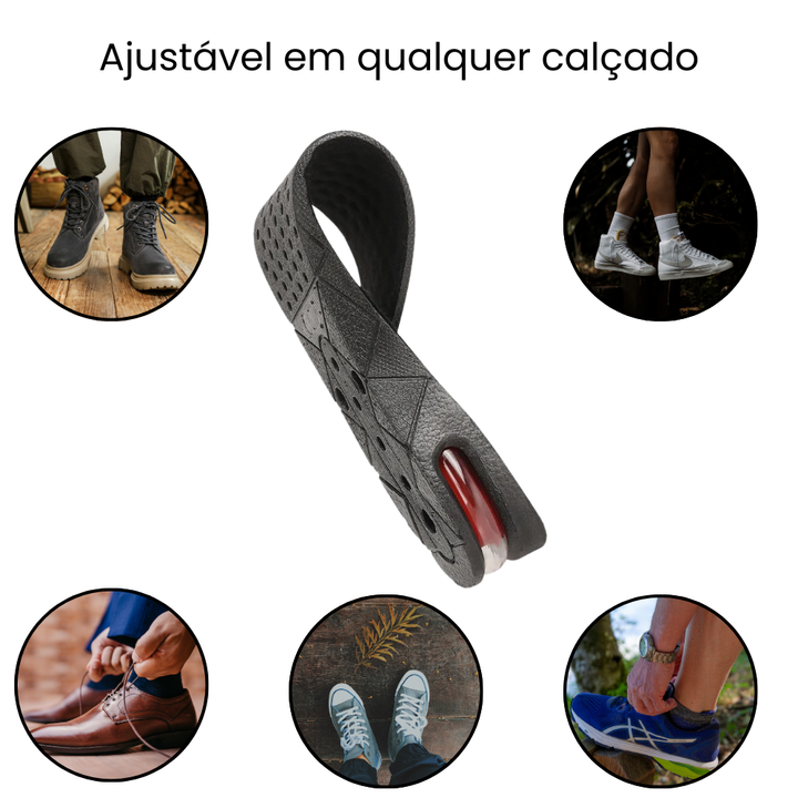 Ganhe até 9 cm de estatura sem trocar de sapato, sinta-se mais confiante em qualquer ocasião! A LiftStep utiliza camadas ajustáveis de PVC respirável que encaixam como blocos: escolha +3 cm, +5 cm, +7 cm ou +9 cm e recorte na linha guia para adaptar do BR 35 ao 45. Mesmo na configuração máxima, a estrutura ergonômica distribui o peso pelo calcanhar, evitando o desconforto de saltos rígidos e mantendo a postura alinhada.